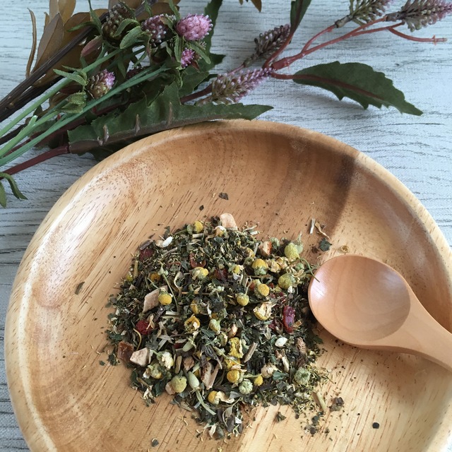 朝晩の気温が急に低くなってきましたね。 日中も気温は高い日もあるものの、風は秋の爽やかさを感じます。 秋は湿度が低くなり、肺が傷つきやすい季節です。 肺が傷つくと、鼻水や咳など呼吸器系の不調が出やすくなります。 そんな秋におすすめのハーブをブレンドしました。 季節限定ブレンドティーです。 この機会にぜひお試しください。 ------------------------------- 原材料名:ルイボス、リンデン、レモングラス、エルダーフラワー、ローズヒップ 賞味期限:商品到着後1年以内にお召し上がりください 食品添加物:なし 内容量:30g(ティーカップ約10~15杯分) 保存方法:直射日光、高温多湿を避けて保存してください ------------------------------------------------------------------------------- ハーブティーは日本では食品であり、医薬品ではありません。 小さいお子さま、妊娠中の方、治療中の方は、かかりつけの医師などにあらかじめご相談いただけると安心です。 -------------------------------------------------------------------------------